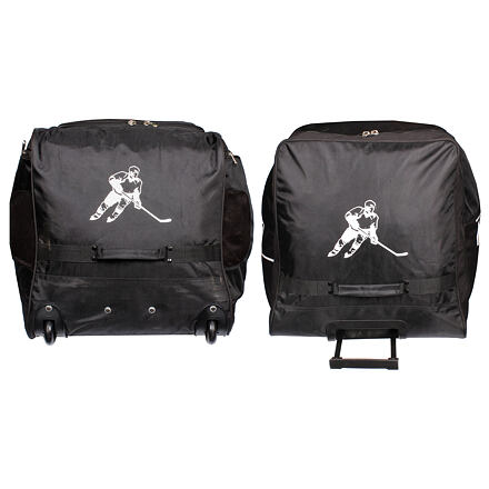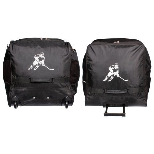 Hokejová taška s kolieskami Merco Hockey Super Player SR je určená pre seniorských hráčov hokeja či hokejbalu všetkých výkonnostných kategórií. Vďaka pogumovaným kolieskam s priemerom 6 cm a vysúvaciemu madlu bude prevážanie kompletnej hokejovej výstroje na tréning či zápas úplná hračka. Taška je vyrobená z odolného nylonu, jej dno je navyše spevnené o dve plastové lišty pre dlhšiu životnosť. Taška Super Player SR ponúka jedno hlavné vrecko so širokým "U" zipsom pre ľahký prístup, na bokoch sú integrované bočné vrecká na korčule s odvetrávaním pre rýchle schnutie av prednej časti je navyše vrecko pre Vaše osobné veci a drobnosti. Pre ľahšiu a rýchlejšiu manipuláciu má taška aj dve bočné nylonové pútka a dva dlhšie popruhy na prenášanie v ruke alebo na ramene. Hokejová taška Super Player SR má rozmery približne 90 x 45 x 49 cm a hmotnosť 4,5 kg.