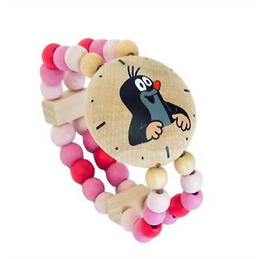 Dievčenské drevené hodinky s obrázkom krtka. Navlečené na jemnej gumičke. Nevhodné pre deti do 3 rokov. Obsahuje malé časti. Výrobok je zdravotne nezávadný.