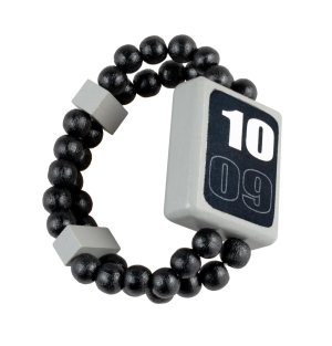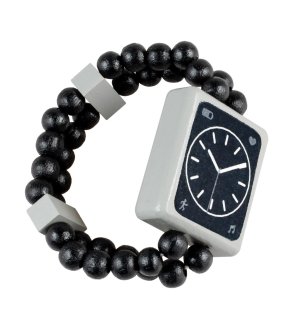 Obojstranné drevené hodinky s obrázkom digitálnych a ručičkových hodín. Navlečené na jemnej gumičke. Hlavné vlastnosti: pekný doplnoknevhodné pre deti do 3 rokov, obsahuje malé častidrevená hračka spĺňa všetky normy EÚ
