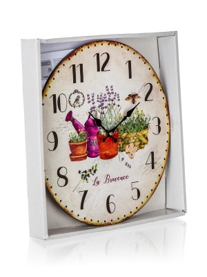 Nástenné okrúhle hodiny LAVENDER, s celoplošným dekorom. Hodinový strojček je napájaný jedným kusom batérie AA (nie je súčasťou balenia). Produkt je ideálnou dekoráciou do vášho bytu alebo štýlovej kuchyne.
