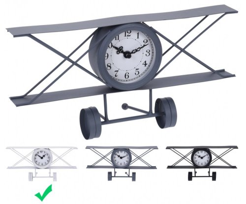 Stolové hodiny v kovovom prevedení - podarený retro design lietadla - napájanie iba na 1 ceruzkovú aa batériu (nie je súčasťou) - rozmery: 30 x 15 x 8 cm - farba: biela konštrukcia / biely ciferník