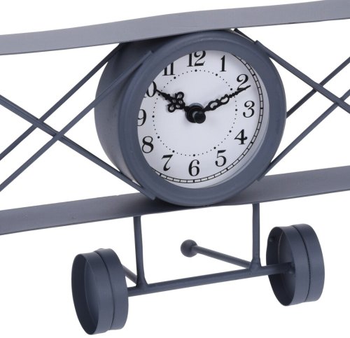 Stolové hodiny v kovovom prevedení - podarený retro design lietadla - napájanie iba na 1 ceruzkovú aa batériu (nie je súčasťou) - rozmery: 30 x 15 x 8 cm - farba: čierna konštrukcia / biely ciferník