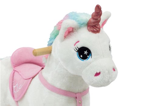 Roztomilý hojdací jednorožec poteší všetky malé slečny, ktoré toto zvieratko milujú! Vďaka sedlu bude sedenie na poníkovi pohodlné ao príjemnú zábavu sa postarajú zvukové efekty.