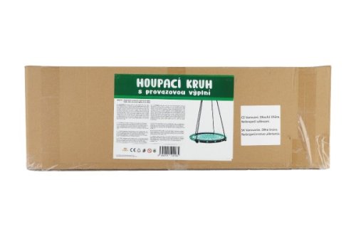 Perfektná hojdačka pre zábavu aj relaxáciu. Sedák je vypletený povrazovou sieťou, kovový rám je tiež chránený povrazom. Použitý materiál umožňuje komfortný odpočinok aj bezpečné hojdanie. Hojdačka sa môže používať iba v sede alebo v ľahu. Zavesuje sa za kovové krúžky, ktoré sú prevlečené na závesných lanách. Táto hojdačka je určená na vonkajšie použitie. Umiestnenie je vhodné na plochý, nie betónový, dláždený a asfaltovaný povrh, s minimálnym odstupom 2 m od možných prekážok, ako sú ploty, garáže, domy, previsnuté vetvy, práčovné šnúry alebo elektrické vedenia. Dĺžka lán: cca 130 cm Priemer kruhu: 80 cm Nosnosť: 150 kg Vhodné od 3 rokov