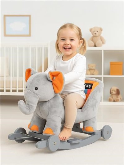 Neobyčajne krásny hojdací sloník s kolieskami PlayTo bol navrhnutý pre deti, ktoré majú rady dobrodružstvo. Pevné drevené lišty a rukoväte pomáhajú dieťaťu udržať rovnováhu. Hojdacie lišty je možné navyše jednoducho odskrutkovať. Preklopením jednoduchého mechanizmu na lištách vysuniete kolieska, čím v sekunde zmeníte hojdaciu hračku na jazdiaceho sloníka. Celá hračka je vyrobená z hebkého a veľmi príjemného na dotyk plyšového materiálu. Po stlačení uška sloník zaspieva veselú pesničku. Batérie sú už súčasťou sloníka. <BR>Charakteristika:<BR>- drevené hojdacie lišty<BR>- stabilná konštrukcia<BR>- interaktívne uško<BR>- hebký a príjemný materiál<BR>- pohodlne tvarované sedlo<BR>- možnosť demontáže hojdacích líšt<BR> - nosnosť do 30 kg<BR>- od 3 rokov<BR> Rozmery:<BR>- výška bez líšt 43 cm<BR>- dĺžka líšt 69 cm<BR>- dĺžka sloníka 55 cm<BR>- šírka sloníka 35 cm <BR>- výška sedla od zeme bez líšt 25 cm<BR>- výška sedla od zeme vrátane líšt 32 cm<BR>- šírka sedla 19 cm<BR>- hmotnosť netto 4 kg<BR>Rozmery balenia:<BR>- 45x32x54 cm<BR>- hmotnosť brutto 5 kg<BR>