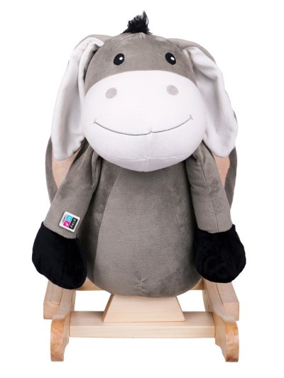 Hojdací oslík PlayTo s mnohými vychytávkami. Hračka má sedlo, drevené rukoväte a drevené stúpadlá na nohy. Somárik po stlačení labky hrá melódiu. Labky sú mäkké a pohyblivé. Sedlo je pohodlné, bezpečné a krásne tvarované. Vhodné pre deti od 18 mesiacov. Rozmery: Hračka s hojdacej časti: dxvxš: cca 65x60x40 cm. Výška sedadla od zeme: cca 25 cm. Kresielko: šxhxv: cca 20x17x26 cm. Stúpadlo na nohy: dxš: cca 13x3 cm.
