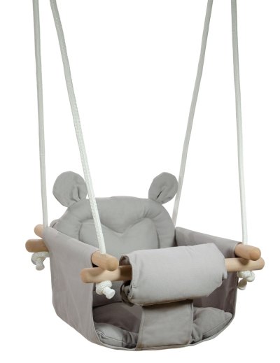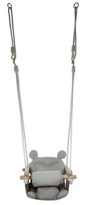 Komfort, bezpečie, zábava... medvedík presne vie, čo spokojné bábätká potrebujú! Táto detská hojdačka ponúka nielen množstvo hodín zábavy, ale aj aktívny odpočinok. Konštrukcia z bukového dreva a sedátko zo 100% bavlny zaisťujú plné pohodlie a bezpečnosť pri hojdaní. Laná s 2 karabínami sú výškovo nastaviteľné (až 180 cm). Koniec lán je zakončený plastovou poistkou proti ich rozviazaniu. Vďaka tlmeným farbám a jednoduchému dizajnu je hojdačka taktiež brilantným doplnkom do izbičky! Hlavné vlastnosti: nosnosť 60 kgvýškovo nastaviteľné lano (max. 180 cm)plastová poistka proti rozviazaniu lanvyrobené zo 100% bavlnyroztomilý dizajn s medvedíkom