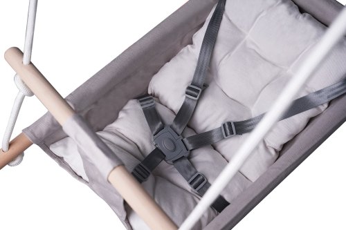 Hojdačku využijete doma v izbičke alebo napríklad aj na krytej terase. Vďaka nastaviteľnému lanu ľahko prispôsobíte výšku zavesenia vlastným potrebám. Hojdačka je určená deťom od 6 mesiacov a unesie až 60 kg .