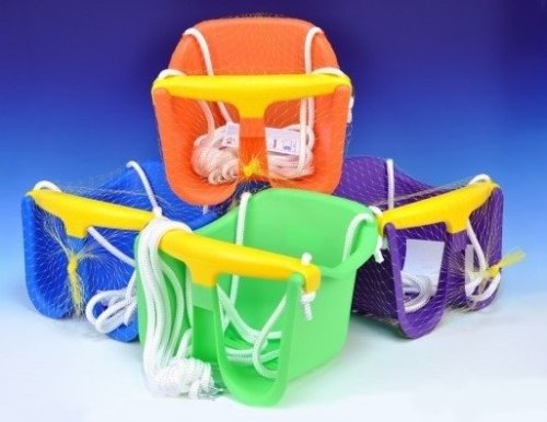 Detská závesná hojdačka, ktorá je vďaka svojej konštrukcii a bezpečnostnej poistke, určená pre veľmi malé deti.