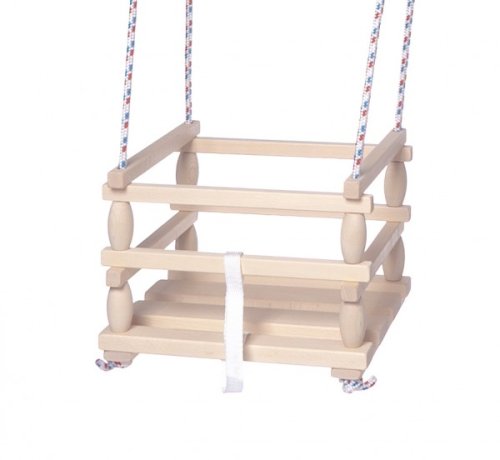 Hojdačka s bezpečnotnou zábranou určená najmenším deťom, ktoré už samé sedia. Miesto na zavesenie hojdačky musí byť vybrané tak, aby bol na hojdanie dodržaný odstup (min. 2 m) od stien, plot a iných prekážok/objektov. V blízkom okolí miesta na používanie hojdačky sa nesmú ponechať žiadne ostré predety. Podlahu v okolí hojdačky voľte z materiálu tlmiacu náraz alebo trávnik. Použitie v domácnosti aj vonku. Hojdačka nie je povrchovo upravená, nevystavujte dlhodobo zmenám počasia. Nosnosť hojdačky 80 kg, dĺžka lana 1,7m. Rozmery balenia 34 x 32 x 12 cm. Vhodné pre deti od 6 mesiacov.