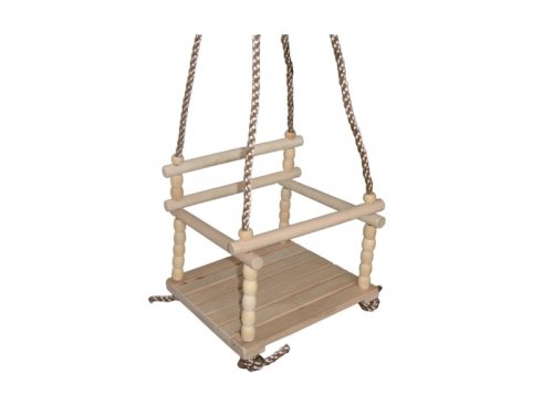 Hojdačka drevená (detská). Rozmery sedadla 30 cm na šírku a 29,5 cm na dĺžku. Výška operadla od sedadla je 26 cm. Dĺžka povrazu, je od sedadla, po miesto zavesenia krúžku - 140 cm. Nosnosť do 40 kg. Výrobok nie je vhodný pre deti do 3 rokov.