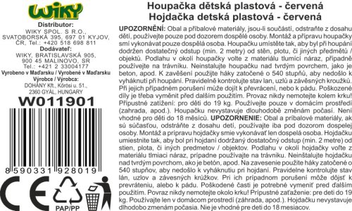 Hojdačka je jedno z najlepších riešení, ako urobiť vašim deťom radosť – sú totiž veľmi lacné a deti majú hojdačky rady. Môžete ich zavesiť na detskú zostavu, na strom alebo ich umiestniť do bytu. Vzhľadom na svoju konštrukciu a bezpečnostnú poistku je určená pre veľmi malé deti, ale maximálne do 3 rokov veku. Rozmery: D: 36cm x Š: 38cm x V: 30cm Váha: 0,97kg Zavesenie 180cm Nosnosť do 20kg