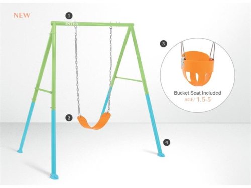 Hojdacia vonkajšia zostava 2v1 značky Intex obsahuje pestrofarebný flexibilný hojdací sedák , ktorý je zavesený na spoľahlivých reťaziach potiahnutých plastizolom na stabillnej oceľovej konštrukcii. Ďalej sada obsahuje škrupinové hojdacie sedadlo pre menšie deti od 1,5 roka , aby si hojdačku mohli užiť aj tí najmenší! Pretože stabilita je základ celej hojdačky je celá konštrukcia vytvorená v špeciálnom prevedení A-rámy a špeciálnym kotviacim systém pre upevnenie do zeme zaisťujú ešte väčšiu extra stabilitu . Zostavená hojdačka má rozmery 1,80 x 2,54 x 2,11 m . Určené iba na vonkajšie použitie pod dohľadom dospelej osoby.