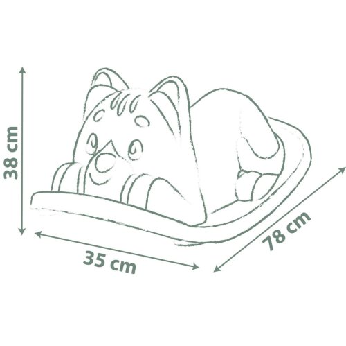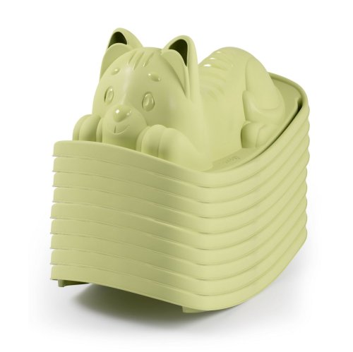 Hojdačka s ergonomickým sedátkom v tvare mačky v zelenej farbe. Uši slúžia ako držadlá. Plastové diely sú ošetrené anti-UV, čo zaisťuje dobrú odolnosť a stálosť farieb v priebehu času. Tento výrobok obsahuje minimálne 98% recyklovaného materiálu. Nosnosť maximálne 50 kg. Rozmery hojdačky (DxŠxV): 35 x 78 x 38 cm.