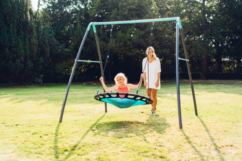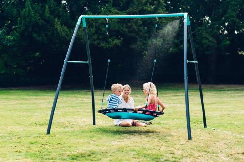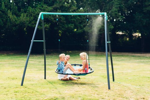 Pripojte detskú hojdačku Plum® s kovovou konštrukciou a tryskou na výrobu hmloviny k záhradnej hadici a užite si osviežujúcu zábavu v horúcich letných dňoch. Extra vysoký oceľový rám zaručuje vysokú stabilitu a je vyrobený z práškovo lakovanej ocele pozinkovanej zvnútra aj zvonku, ktoré poskytuje trvalú ochranu proti hrdzi. Šedá farba rámu s nebesky modrou vytvára nádhernú farebnú kombináciu. Pohodlné hojdacie hniezdo poskytuje dostatok miesta pre dve malé deti alebo dospelú osobu. Rozmer hojdacieho kruhu: cca 120 cm. Rozmer zostavenej hojdačky cca: 218 x 215 x 238 cm. Maximálna nosnosť užívateľa: 100 kg. Len na vonkajšie použitie pod dohľadom dospelej osoby. Nevhodné pre deti mladšie ako 36 mesiacov - nebezpečenstvo pádu. Rozmer balenia: 22 x 120 x 38 cm. Vek: 3+