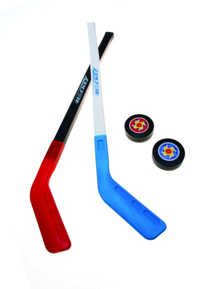 Hokejová herné sada. V sade sú dve hokejky a dva puky. Vhodné pre deti od 3 rokov.