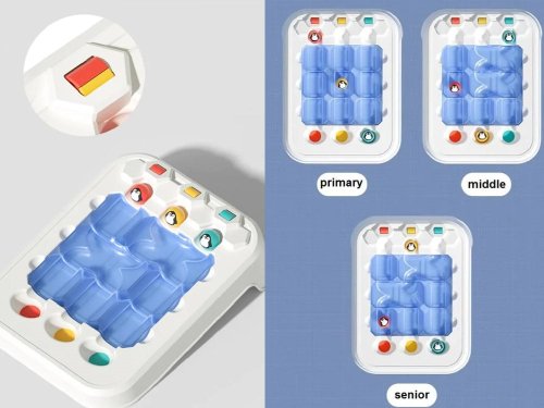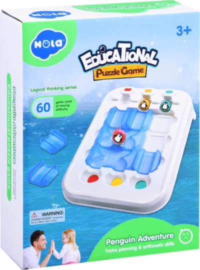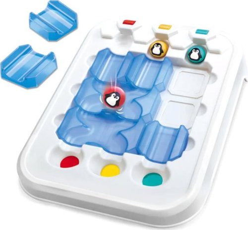 Súprava obsahuje: - hernú podložku, - 3 guličky v rôznych farbách s obrázkami veselých tučniakov, - prvky bludiska (rovinky - 9 dielikov, križovatky - 3 dieliky), - brožúrku s úlohami a riešeniami. Rozmery: základňa: cca 23,5 x 27,5 x 5,5 cm, prvky dráhy: rovinky - cca 3,8 x 3,8 x 1,8 cm, križovatky - 7,8 x 3,8 x 1,8 cm, priemer guličky: cca 1,6 cm.