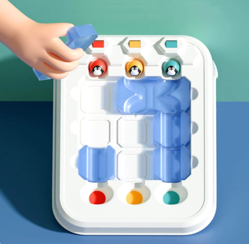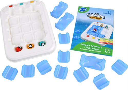 Priložená brožúra obsahuje 60 zadaní rozdelených podľa obtiažnosti. Úrovne sú označené farbami a hviezdičkami. Vyberte si jedno zo zadania a nachystajte dieliky a farebné tučniaky na hraciu plochu podľa obrázku. Potom si pripravte dieliky podľa zadania, ktoré musíte v tomto zadaní použiť. Úlohou dieťaťa je usporiadať trasu tučniakov tak, aby každá gulička zapadla do farebne zodpovedajúceho otvoru na konci dráhy. Počas hry nie je možné zadané dieliky presúvať ani odstraňovať z hracej plochy. Pokiaľ si dieťa nebude vedieť rady, druhá polovica brožúry obsahuje riešenie všetkých zadaní.