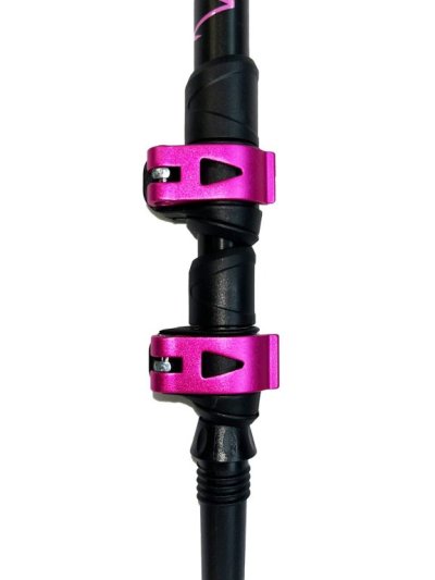 Veľmi ľahké a pevné trekingové palice s pákovým systémom uťahovania, hrotmi z volfrámu a predĺžená EVA penová rukoväť.