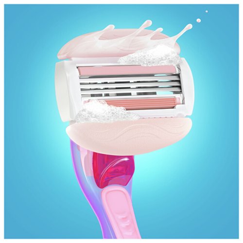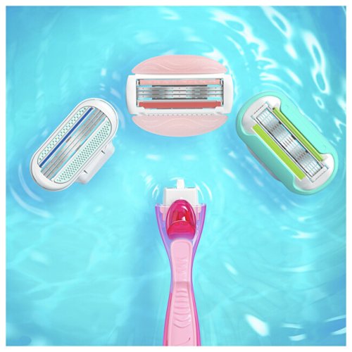 Flexibilné zvlhčujúce pásky uvoľňujú ľahké telové maslá, ktoré umožňujú hladký sklz holiaceho strojčeka po pokožke. Holiaci strojček s 3 čepieľkami kopírujúcimi krivky tela, ktorý zaistí hladké oholenie. Výkyvná oblá holiaca hlava kopíruje krivky tela a ľahko sa dostane aj na ťažko prístupné miesta. Ergonomické rukoväte tvarované tak, aby bolo možné držať holiaci strojček v rôznych polohách. Mäkká gélová rukoväť poskytuje skvelú kontrolu vo vlhkých a klzkých podmienkach. S vôňou bieleho čaju
