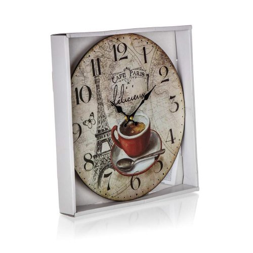 Nástenné okrúhle hodiny CAFE PARIS s priemerom 34 cm s celoplošným dekórom sú skvelý pomocník do domácnosti, ale slúžia tiež ako dekorácia interiéru. Hodinový strojček je napájaný jedným kusom batérie AA (nie je súčasťou balenia). V ponuke ďalšie dekory.