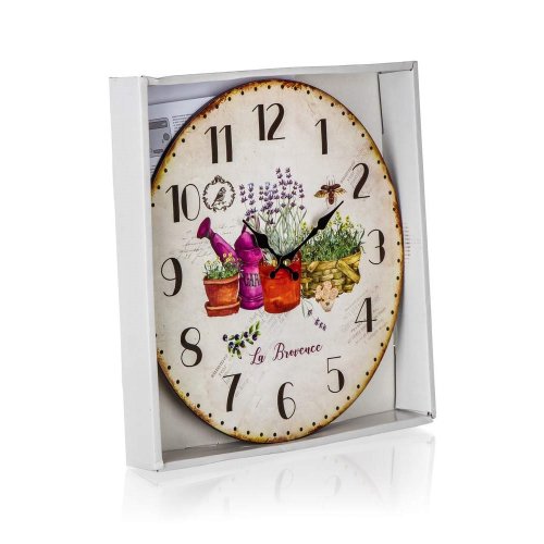 Nástenné okrúhle hodiny LAVENDER s celoplošným dekórom s priemerom 34 cm. Hodinový strojček je napájaný jedným kusom batérie AA (nie je súčasťou balenia). Produkt je ideálnou dekoráciou do vášho bytu alebo štýlovej kuchyne.