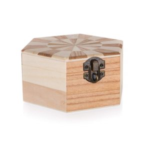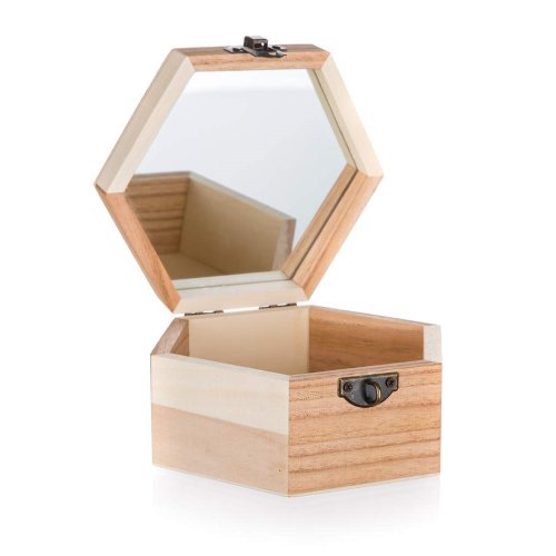 2dielna sada krabička drevená 14 x 12 x 6 cm pre rôzne použitie so zrkadielkom a uzatvárateľným vekom z brezového a smrekového dreva. Veko krabičky vykladané do tvaru šachovnice.