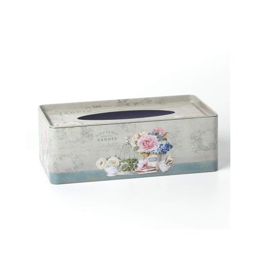Krabička na papierové vreckovky plechová JARDIN 24 x 13 x 9,5 cm, sa vďaka svojmu dizajnu hodí do každého interiéru. Dekoratívne predmety s rôznymi motívmi Vám pomôžu vytvoriť príjemnú atmosféru domova. Plechové dekorácie slúžia nielen ako dizajnový doplnok Vášho domova, ale zároveň sú aj praktické.