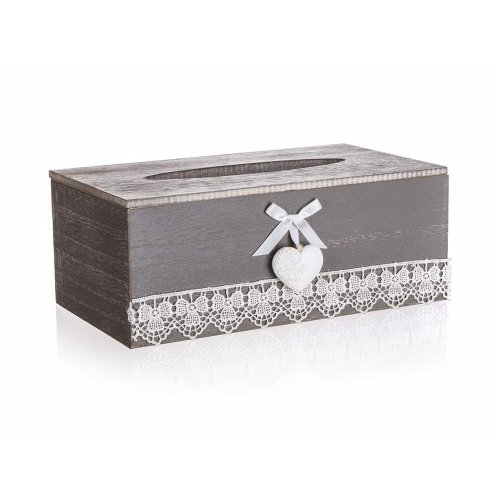 Krabička s čipkou na papierové vreckovky 24 x 14,5 x 9,5 cm LACEWORK, oválny otvor je vybavená otváracím vekom na doplnenie vreckoviek. Papierové vreckovky vždy po ruke v dizajnovej krabičke.