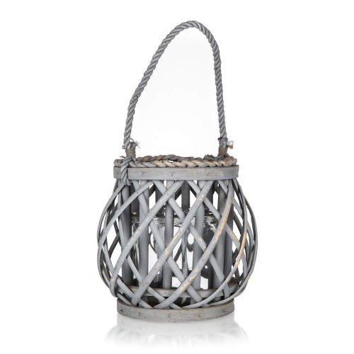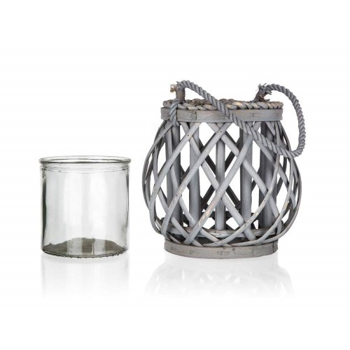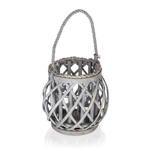 Svietnik závesný zo skla a vŕby o rozmere 16 x 20 cm. Kombinácia skla a vŕby pôsobí príjemným dojmom v každej domácnosti.