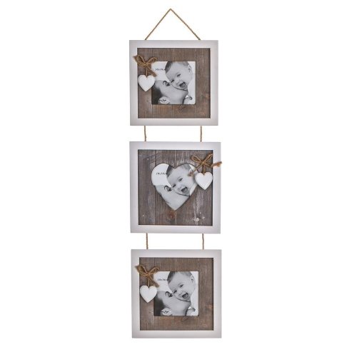 Sada rámčekov SOLID HEART, na 3 fotky je praktický pomocník na umiestnenie a vystavenie fotografií. Ozdobné rámčeky na fotky vytvárajú atmosféru útulného domova.