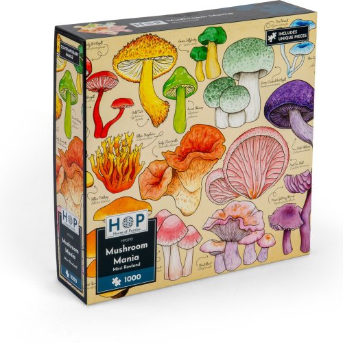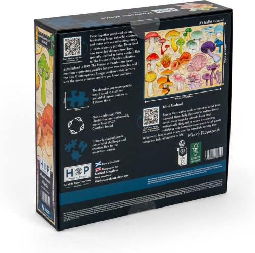 POZNÁMKA: Názvy húb sú uvedené v anglickom a latinskom jazyku. Rozmer zloženého puzzle cca 69 x 48 cm