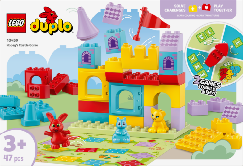 Užite si zábavné rodinné aktivity so vzdelávacou stavebnicou LEGO® DUPLO Hopsy a hra s hradom 2 v 1 Hra obsahuje spinner, hraciu dosku, 3 figúrky zvierat a 47 kociek a dielikov, z ktorých si môžete postaviť rad zábavných hradných hračiek Zábavná dosková hra pre celú rodinu Táto stavebnica obsahuje 2 precvičí striedanie Táto vzdelávacia hračka pomáha batoľatám učiť sa striedať sa, spolupracovať v tíme a zároveň im pomáha rozvíjať jemnú motoriku a kreativitu