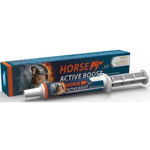 HORSE ACTIVE BOOST poskytuje koňom spoľahlivú dodávku živín, minerálov a vitamínov dôležitých pre ich zdravie, výkonnosť a správnu funkciu životne dôležitých orgánov. Vyvážený prísun výživných látok, elektrolytov a vitamínov zaisťuje rýchlu stabilizáciu fyzického stavu, efektívne naštartovanie regenerácie a rýchly návrat k plnej výkonnosti. Prírodná zložka MELOFEED ® svojim vysokým antioxidačným potenciálom SOD (superoxid dismutázy), indukuje obranu proti voľným kyslíkovým radikálom, podporuje zachovanie integrity kĺbovej chrupavky a svalovej hmoty, obmedzuje zápalové reakcie a pomáha znížiť mieru poškodenia tkanív po záťaži. Zložka ALKOSEL ® ako prírodný zdroj selénu synergicky zvyšuje odolnosť svalových buniek a toleranciu k fyzickej záťaži. Po pravidelnom podávaní bol preukázaný aj pozitívny vplyv na kvalitu semena a životaschopnosť spermií u žrebcov. Vitamíny skupiny B podporujú energetický metabolizmus a dobrý príjem krmiva. Železo zaisťuje optimálnu krvotvorbu a dostatočné okysličenie tkanív. Esenciálne aminokyseliny dodávajú metabolickú stabilitu a tvorbu svaloviny. Elektrolyty udržujú dobrý prenos vzruchu na nervových zakončeniach. Antioxidanty chránia biomembrány pred voľnými kyslíkovými radikálmi, podporujú metabolizmus a využitie kyslíka vo svalstve. Cieľové druhy zvierat Kôň Podávané množstvo a spôsob podávania Dávkovanie: kôň (ž.hm. 500 kg): 20 g (1 aplikátor) stredné plemená koní: 10 g (½ aplikátora) malé plemená koní: 5 g (¼ aplikátora)