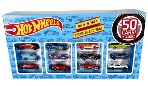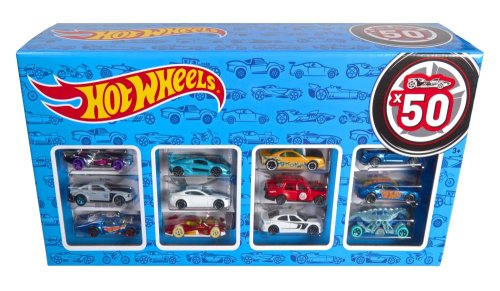 Autá Hot Wheels® sú skvelou odmenou za dobre odvedenú prácu! Každé z 50 vozidiel v tejto základnej kolekcii automobilov Hot Wheels® je jednotlivo zabalené a vyznačuje sa skvelým dekorom, čo z neho robí dokonalý materiál na každú príležitosť. Pre darčekové tašky, párty láskavosti alebo jedno špeciálne dieťa je tento balíček dokonalou štartovacou sadou a je dodávaný so značkovým boxom Hot Wheels® pre ľahkú prenosnosť. Farby a dekorácie sa môžu líšiť.