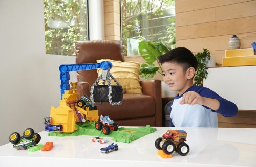 V sete Hot Wheels® Monster Trucks Aréna: Výzva pre Rhinomita môžu deti s priloženým Monster Truckom Rhinomite prerážať rozoberateľné steny a získať tak trofej pre víťazov. Dávajte si pozor: nenechajte sa rozbiť obrovskou pneumatikou, ktorá sa vznáša nad vami! Farby a prevedenia sa môžu líšiť.