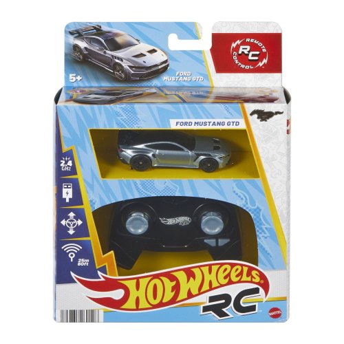 Pretekajte na tratiach Hot Wheels® alebo mimo nich s modelom Hot Wheels® RC Ford Mustang GTD v mierke 1:64, ktorý je vybavený diaľkovým ovládaním.