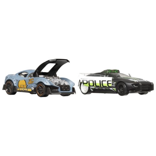 Dizajn áut zahŕňa rôzne detaily, ako sú napríklad otváracie kapoty, výrazné spojlerové prvky, nápisy a polepy s číslami, značkami Hot Wheels či policajnými motívmi. Niektoré vozidlá majú odhalené motory a ďalšie technické detaily, ktoré dodávajú hračkám na autentickosti a zvyšujú ich hodnotu ako zberateľských kúskov. Celkovo sada ponúka širokú škálu modelov, ktorá uspokojí rôzne preferencie a umožní deťom rozvíjať predstavivosť pri hre aj pretekaní.