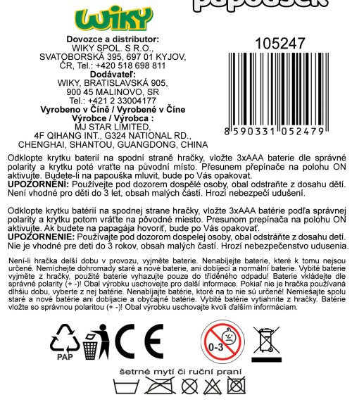 batérie 3x 1,5 V AAA (sú súčasťou balenia) šetrné umývanie či ručné pranie je možné Veľkosť: 27 cm