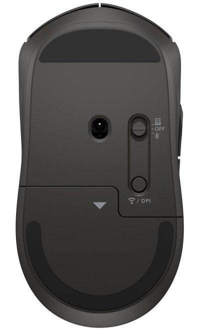 Bezdrôtová myš HP 405, USB dongle 2,4 GHz, 1× batéria AA.