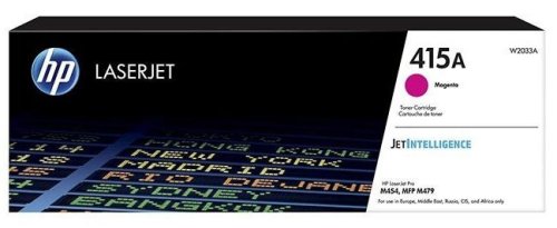 Originálny toner HP 415A, HP W2033A, farba purpurová (magenta), výťažnosť 2100 strán. Pre tlačiarne HP Color LaserJet M454dn, Color LaserJet M454dw, Color LaserJet MFP M479dw, Color LaserJet MFP M479fdn, Color LaserJet MFP M479fdw, Color LaserJet MFP M479fnw