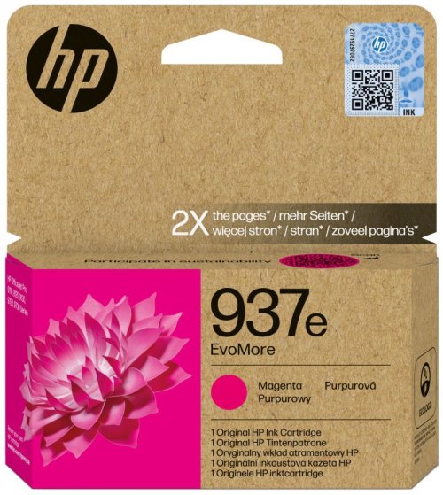 Originálne atramentové kazety HP EvoMore spájajú legendárnu kvalitu s udržateľnejšími vlastnosťami a umožňujú vytlačiť dvojnásobný počet strán oproti klasickým kazetám, takže majú nižšiu uhlíkovú stopu.