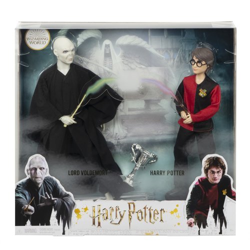 Pripomeň si najznámejšie scénu v boji dobra proti zlu, kedy proti sebe stáli tvárou v tvár Harry Potter ™ a Lord Voldemort. V tomto balení na teba čakajú dve bábiky, ktoré vznikli na motívy obľúbených filmov o mladom čarodejníkovi a jeho priateľoch. Obe bábiky sú oblečené do prepracovaných oblečkov, ktoré sú vernou kópiou oblečenia, ktoré tieto postavy obliekli pri legendárnej bitke. Súčasťou sú aj tematické doplnky, medzi ktorými nájdeš napríklad Pohár troch kúzelníkov a kúzelnej paličky pre oba kúzelníkov. Vďaka luxusnému balenia sú tieto postavičky skvelým zberateľským kúskom, ktorý urobí radosť všetkým milovníkom týchto kníh a filmov.