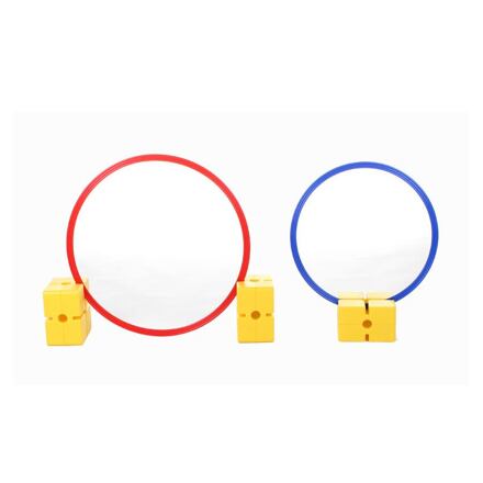 Plastový prekážkový kruh, ktorý je možné pomocou spojok (BK-1, BK-2, CP-3) rôzne pripájať na tyčky PP (100 cm, 120 cm, 160 cm). Sami si môžete vytvoriť vlastnú zostavu pre koordinačné cvičenia. Priemer: 40 cm, 50 cm, 60 cm, 70 cm