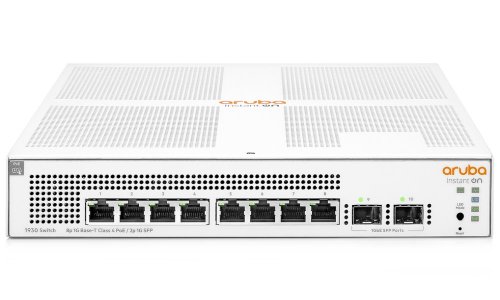 Spravovateľný switch ponúkajúci 8x 10/100/1000 Mbps RJ-45 portov s PoE+ (802.3af/at) a 2x 1 GbE SFP porty . Prepínacia kapacita je 20 Gbps a rýchlosť smerovania činí 14,88 Mpps . Medzi hlavné prednosti patria pokročilé funkcie ako sú VLAN, QoS, IGMP Snooping, agregácia liniek, protokoly Spanning Tree a riadenie prístupu IEEE 802.1X. Switch je možné položiť len tak na stôl, namontovať ho na alebo pod neho, na stenu alebo do 19" rackového rozvádzača. Prevedenie bez ventilátora zaručuje úplne tichý chod. Rad Aruba 1930 ponúka užívateľsky prívetivé webové rozhranie či mobilnú aplikáciu pre jednoduchú konfiguráciu a správu.