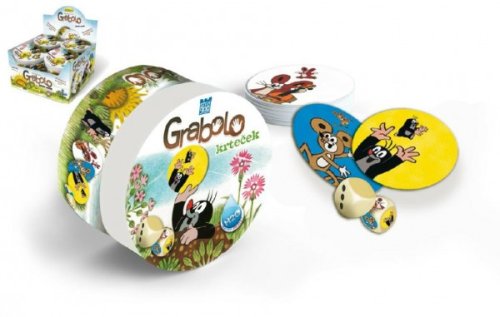 Detská verzia obľúbenej postrehovej hry GRABOLO, tentoraz s obľúbeným Krtkom a jeho kamarátmi. Dokáž, že máš pri stole najlepšie oči a najrýchlejšie ruky. Kocky určia kombináciu farby a obrázku, ty musíš rýchlo reagovať. Cieľom hry je získať predpísaný počet kariet. Plechová krabička obsahuje 36 plastových vodeodolných kariet, 1 farebnú a 1 obrázkovú kocku. Hra je určená pre 3 – 5 hráčov, trvá 8 – 10 minút, odporúčaný vek 3 – 99 rokov.