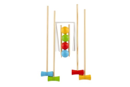 Rozmiestnite bránky podľa návodu a postupne pomocou paličiek dostaňte loptičku cez všetky bránky. Hráč s najnižším počtom úderov vyhráva. Užite si vonku zábavné popoludnie! Kto vyhrá? Rozmery balenia 59 x 21 x 6 cm Vhodné pre deti od 6 rokov