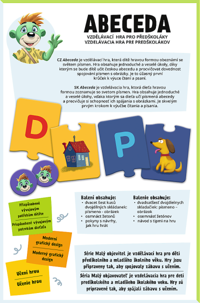 Veselá hra s priraďovaním písmen k obrázkom. Rozvíja slovnú zásobu u najmenších detí, učí tvorbu správnych odpovedí a rozoznávanie predmetov.