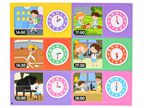 Praktická hra, pri ktorej sa deti zoznámia s časom. Hra rozvíja orientáciu v čase a rozvoj jemnej motoriky. Určené pre deti vo veku od 3 rokov.