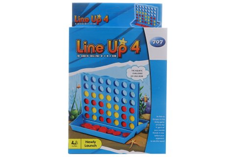 Cestovná hra piškvorky. Balenie obsahuje základňu, 21 žltých žetónov a 21 červených žetónov. Materiál plast. Balené v krabici. Rozmery balenia cca 15x24x4,5 cm. Vek 3+